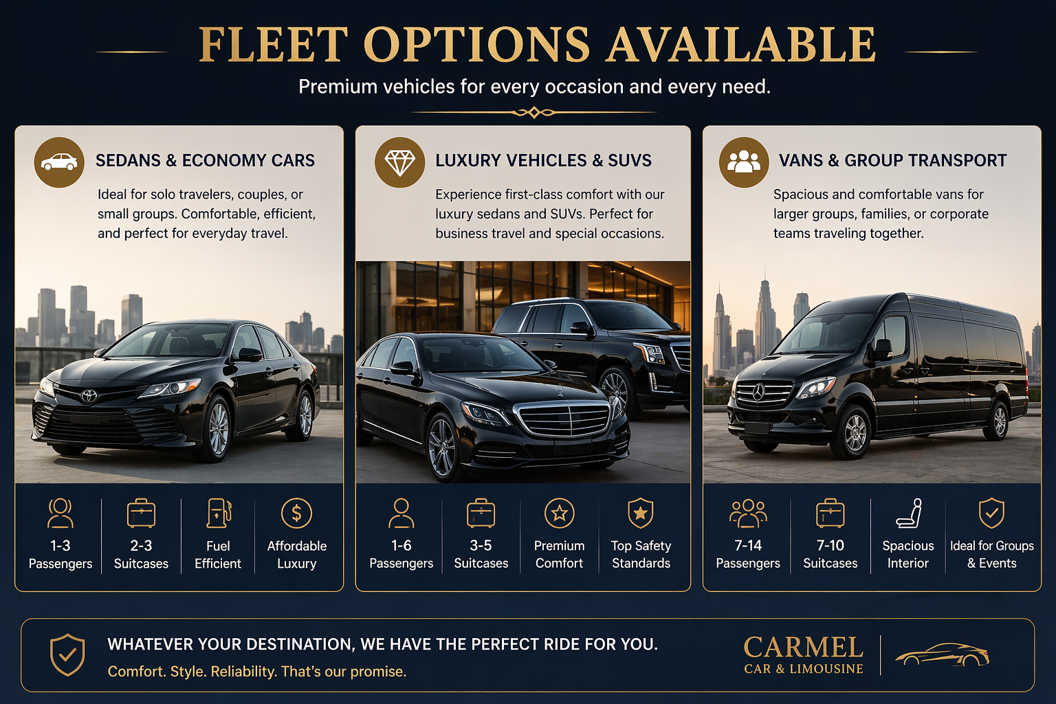 For business professionals, time is money—and Carmel understands that well. Their corporate transportation services are designed for executives who need reliable and punctual travel for meetings, conferences, and client visits.